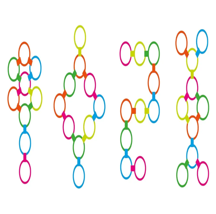 ✔ 10 cerceaux et 10 anneaux multicolores – Pour des combinaisons de jeu infinies.