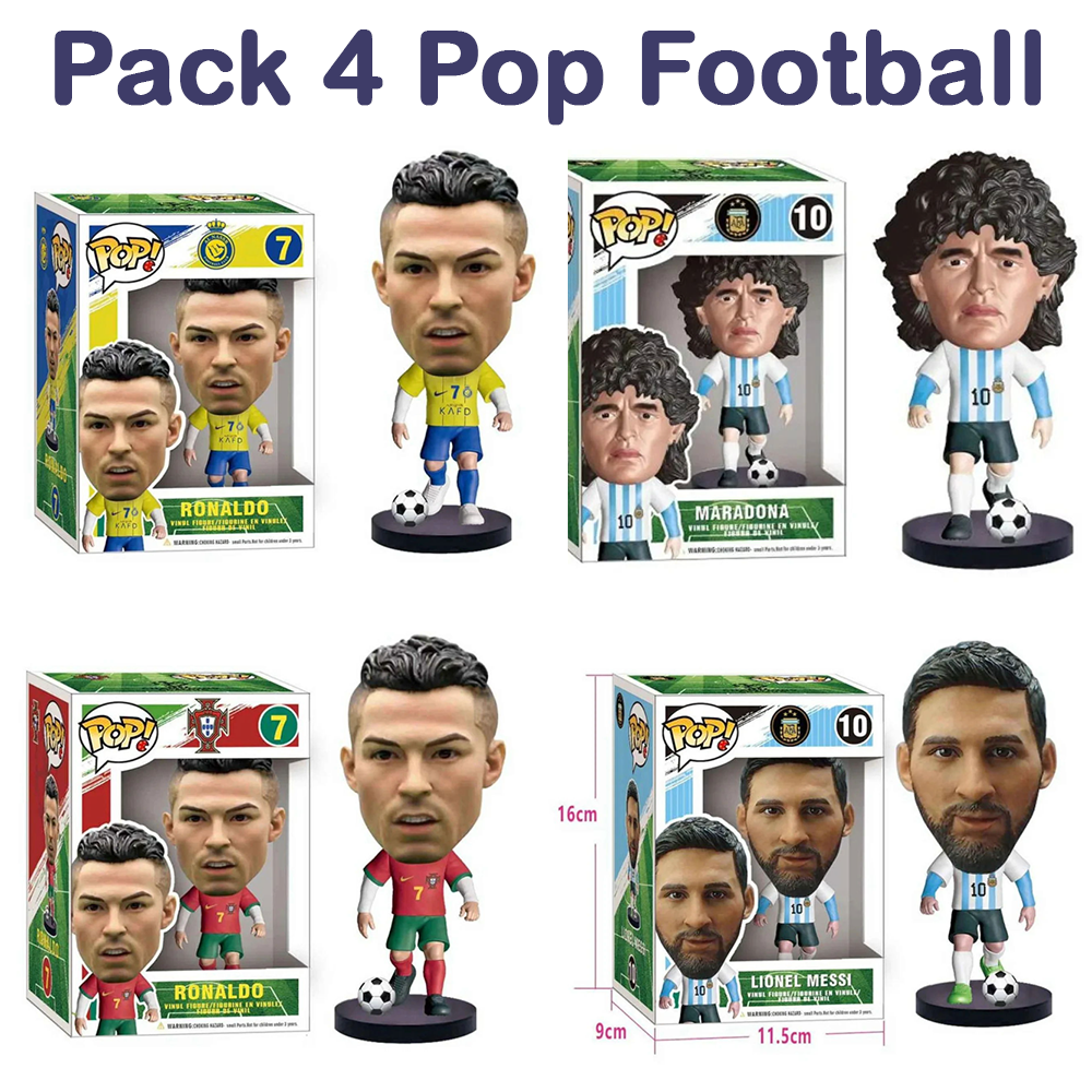 Découvrez le Pack 4 Figurines Pop Football, une collection exclusive de figurines au style Pop, inspirées de quatre légendes du football mondial. Chaque personnage arbore son maillot emblématique de sélection nationale et mesure environ 16 cm de hauteur.