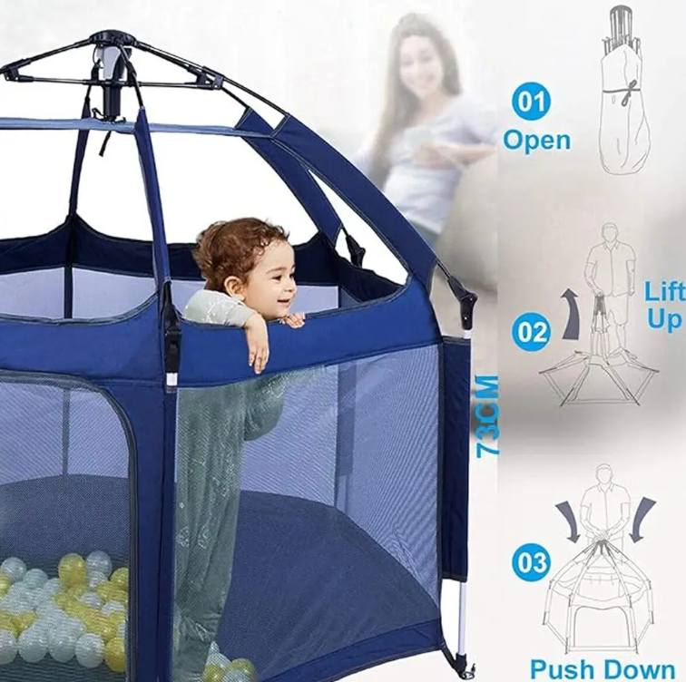 Deux espaces de jeu en un pour accompagner bébé dans ses découvertes ! Ce concept innovant passe instantanément de parc sécurisé à tente d’aventure – idéal pour les 12-36 mois.